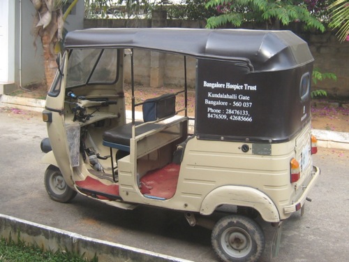 土地の購入や建物の建築、諸々の認可など、ひとつひとつの行程に時間がかかるインドである。準備期間は、ホームケア・サーヴィスと称して、がん患者の住む場所へ車で医師を巡回させる活動をしていた。