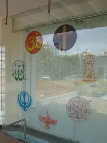 館内には、なんら宗教を示唆するものは見られないが、ヒンドゥー教、キリスト教、仏教……と、インドで信仰されているさまざまな宗教の、額が用意されているのだとのこと。