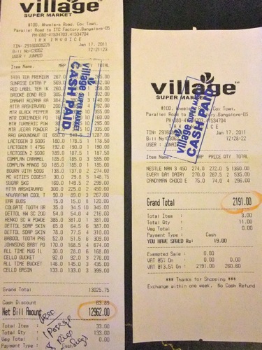 表示されている価格を電卓で計算しつつの買い物だったが、どうやらかなり割引されてたらしく、約15000ルピーを目安に計算していたのだが、実際は13000ルピー。