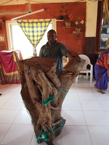 この、木でできたオブジェのようなものは、ラジャの演台だという。ここで礼拝のようなことを行うのだという。