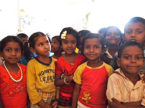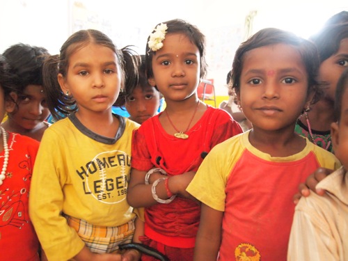 子供たちの服装がまちまちなのは、寄付されたものを着ているからだ。インド的なものあり、アメリカンなものあり。