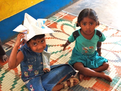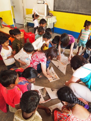 その時々によって状況が違うが、もしも時間があれば折り紙を教えようと、古新聞を持参しておいた。