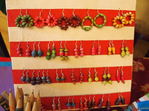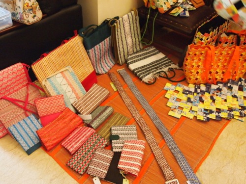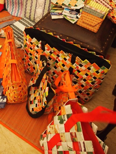 次いで、ここでも先日紹介したANU。我が家の近所のスラムに暮らす女性たちの自助グループで、ジュースのパックやセメント袋を再利用したバッグなどを制作している。