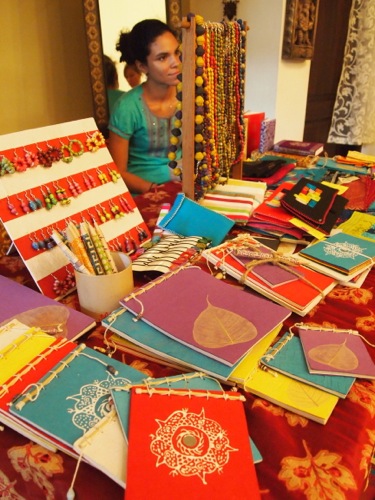いつもは講義用の資料を準備するところ、今回は「店作り」の準備。これが結構、楽しかった。ムンバイで仕入れて来た3つのNGOの手工芸品を展示。