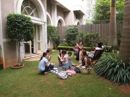 さて、チャリティ・ティーパーティ。開催は2時。準備のため外部の団体には1時半には来て欲しいところだがここはインド。