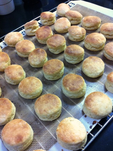 そして最後、肉類をすべて脇へ押しやり、気持ちを切り替え、冷やしておいたスコーンの生地を取り出して型を抜いて焼く。