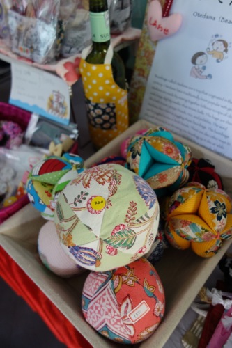 今年も4つのテーブルを確保。まず1つは、布製品の販売コーナー。