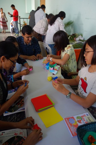 メンバーのお嬢さん二人が、折り紙デモンストレーションを手伝ってくれた。どうもありがとう!