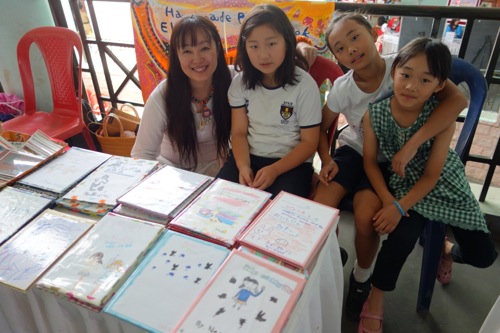 子どもたちの手づくり絵本の販売コーナー。独創的な子供の世界が楽しく、わたしも1冊買い求めた。
