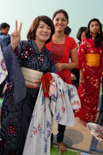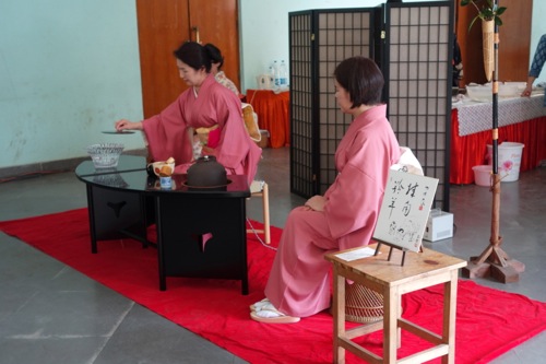 茶道のコーナーも、毎年人気。インド人のゲストも、神妙な顔でお抹茶を味わっている。