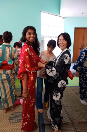 ファミリーフレンドのディーピカは小原流の先生。毎年このイヴェントでも作品を展示している。