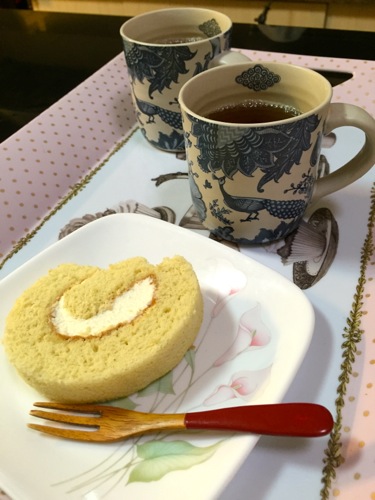上の写真は、夫のためにとっておいた端っこ。わたしは昼間、すでに食べたので、ない。お気に入りのダージリン、セカンドフラッシュ(マスカテル)をいれる。