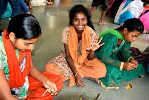 私が担当したグループは少し人数多めで、ラバーブレスレットを作成。3人のメンバーで担当しましたが私の知識が浅く(当日、子供達に会う直前に藤原さんより伝授頂いた)、私自身が戸惑いました。子供達の半分以上がブレスレット作成の経験者だったので(ある子は学校でやった!と言ってました)、フォークでやらず指で作成してました! そちらのほうが、インドらしくていいなと思いました。時間があれば、指でのやり方を私の方が学びたかったです。