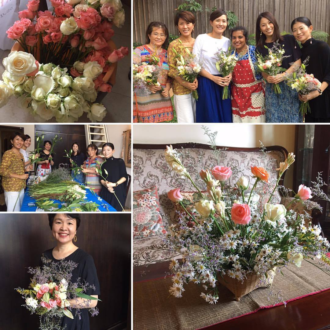 インドの花々をフルに使いつつ、実践的なアドヴァイスを受けながらの講習。本当に意義深くて、楽しかった! 贈る花も、自宅の花も、これからは、自分でもあれこれと、アレンジメントを楽しもうと思う。