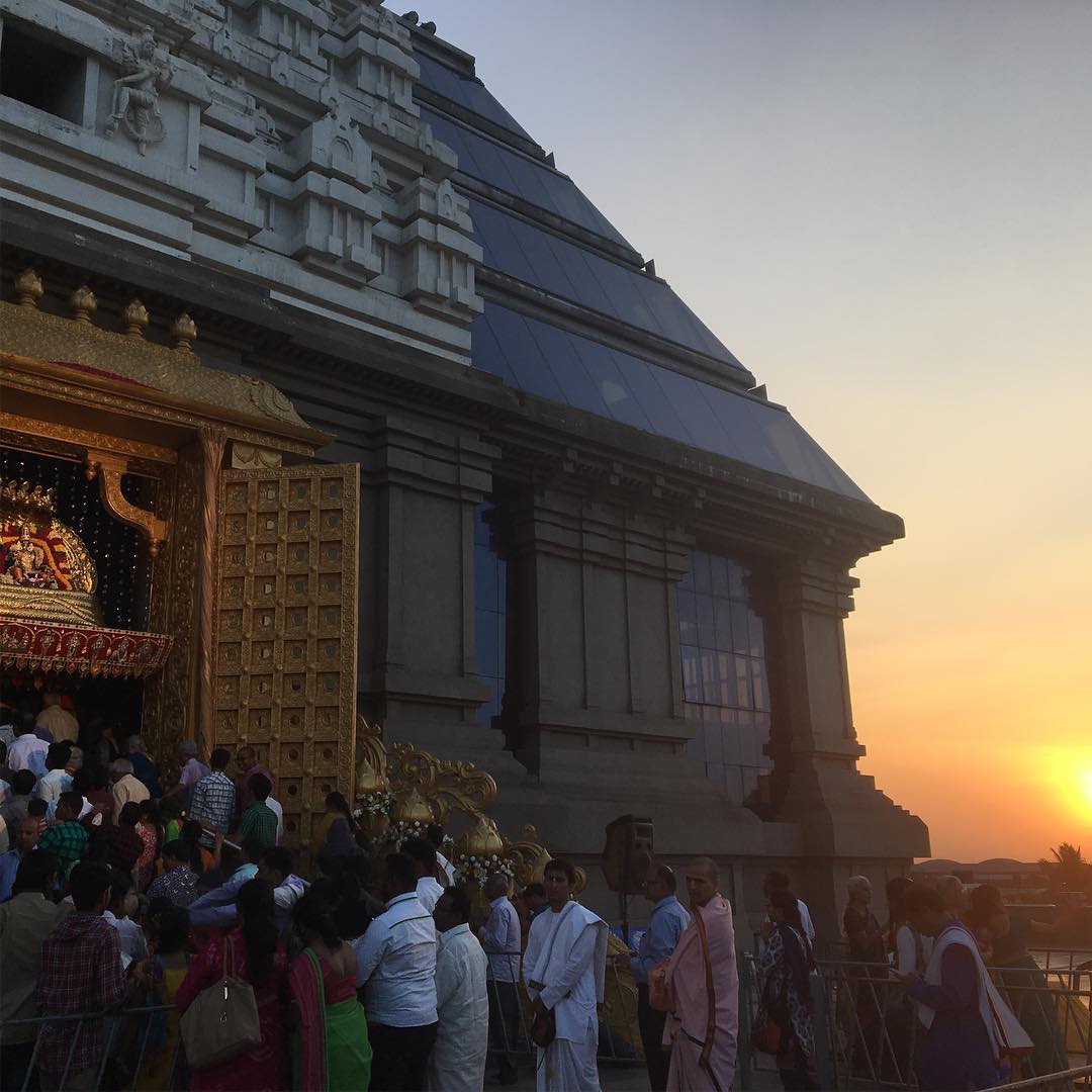 その母体であるイスコン寺院にて本日開催された、クリシュナ神を讃える祝祭に招待されたので、ミューズ・クリエイションのメンバー男子とともに訪れた。大勢の信者たちに紛れつつ、寺院内を案内していただく。