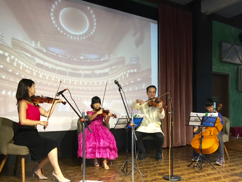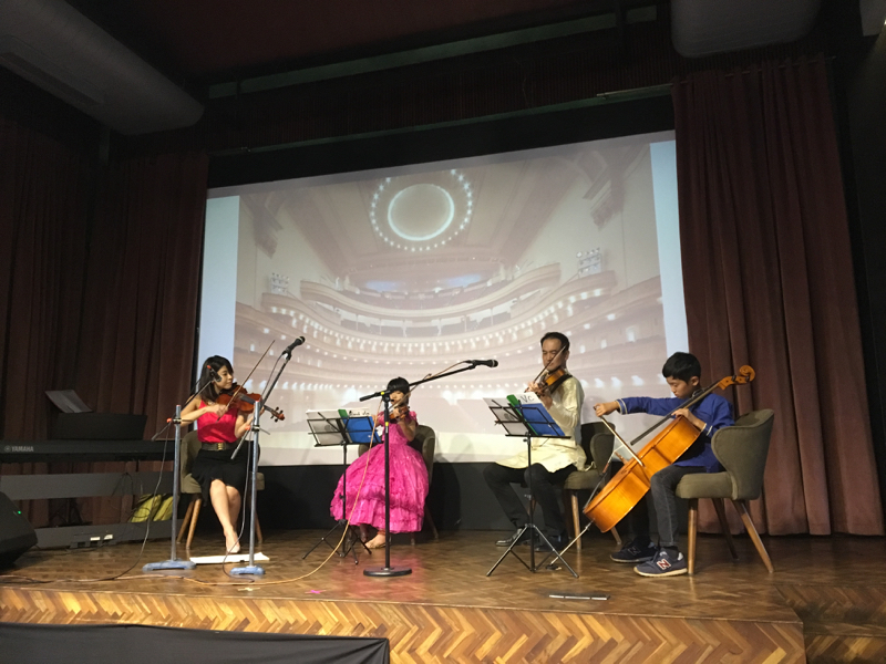 ◎マサラ・カルテット。大村ファミリーによるヴィオラ、チェロ、ヴァイオリンのカルテット。My favorite thingsとベートーヴェンの第九を披露してくれた。家族が息を揃えての演奏、本当にすてきだった! 我が夫も強く感銘を受けていた様子。