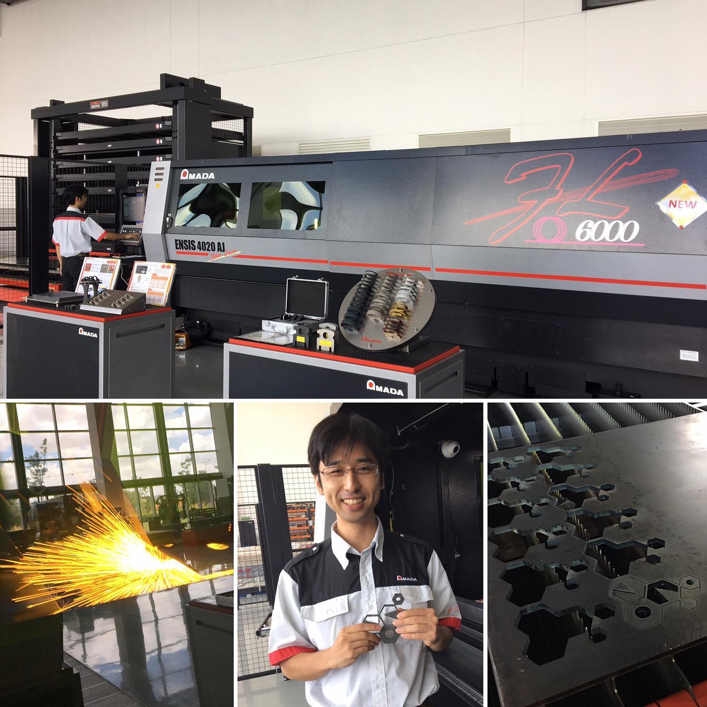さて、アマダインディアは、板金にはじまり、切削や研削、溶接などに用いられる加工機械を製造販売するアマダホールディングスのインド法人で、2014年に、この新社屋が設立された。社屋の一部は、まるで工場のような広々とした空間になっており、いくつもの最新の加工機械が並んでいる。「テクニカルセンター」と呼ばれるここへ顧客を招き、実際に機械の説明を行うという。
