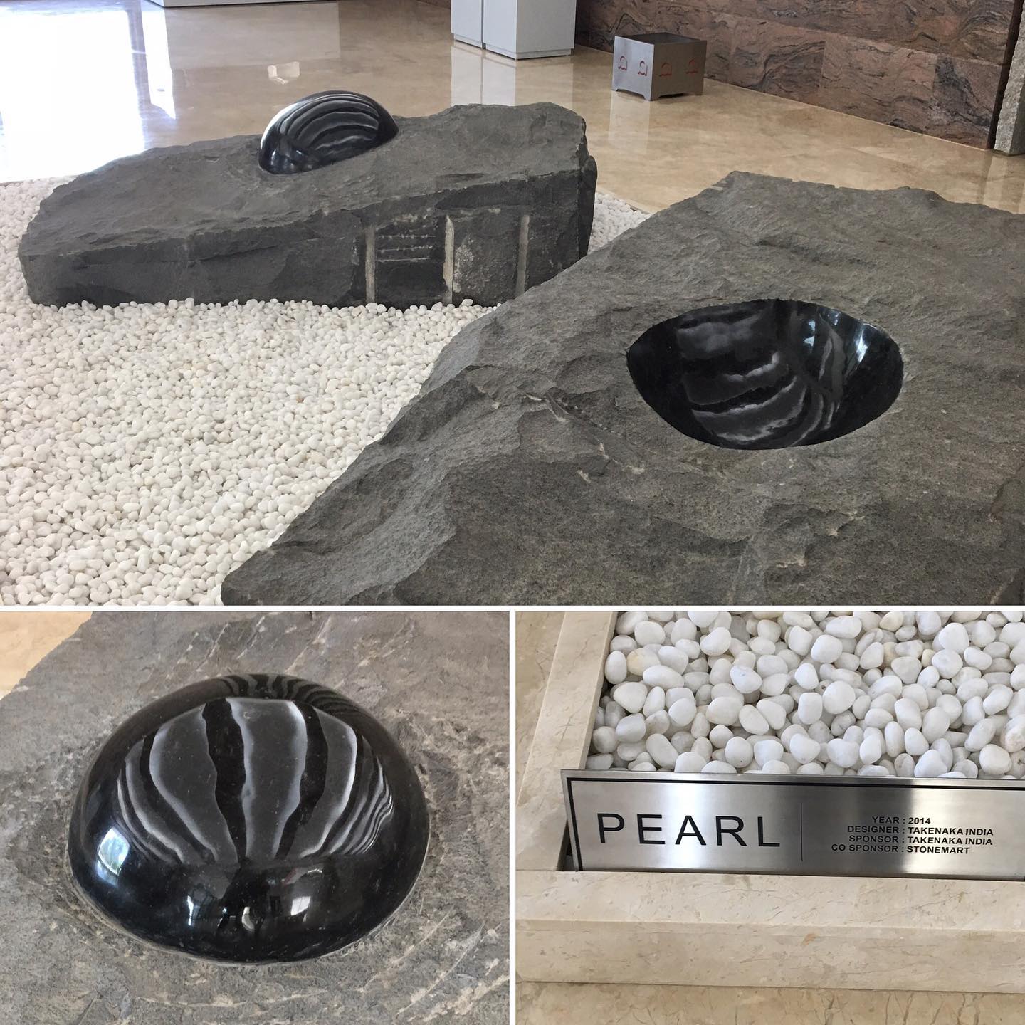 〈余談〉アマダインディアのビルディングに入り感銘を受けたのは、インドの石を巧みに使った建築の風合いだった。インドには大理石(マーブル)、御影石(グラナイト)など石材が豊か。御影石には、黒や赤、緑などのさまざまな種類があり廉価で入手できる。入り口にある御影石のオブジェもすてきだった。荒削りの石を研磨すると、まさにパールの如く、艶やかに輝くのだ。