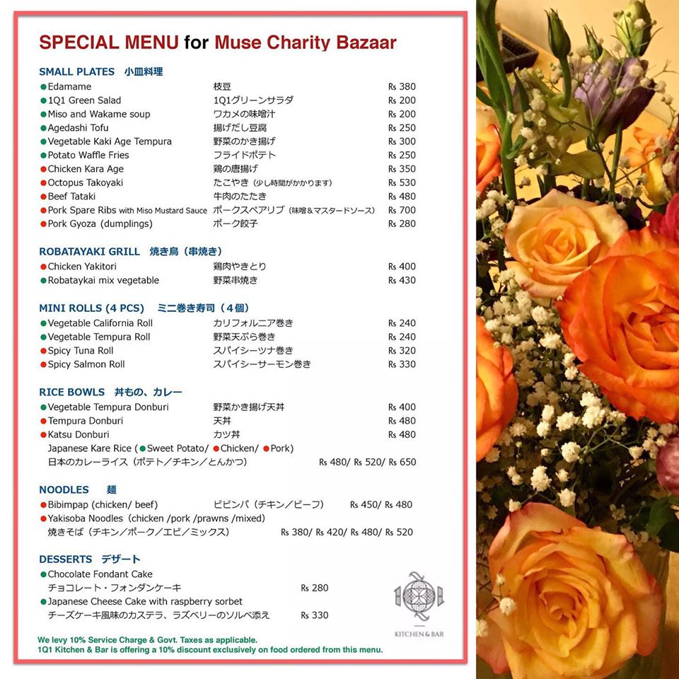 会場にテーブルを設置し、ミューズ・クリエイションのメンバーによる紙製品、布製品の手工芸品販売、および書道や折り紙のデモンストレーションを実施する。また在バンガロールの慈善団体、非営利団体による手工芸品の販売ほか、活動内容の告知なども行う。