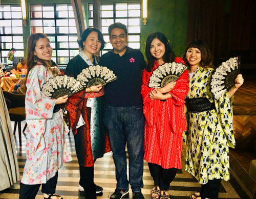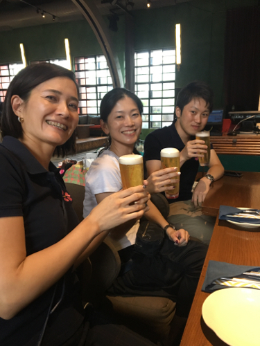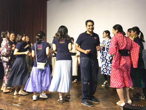 今回は、メンバー有志で「ダンシングヒーロー盆踊り」(愛知県限定の伝統)を行うことになったので、場を和風に盛り上げるべく、浴衣をお持ちのメンバーには浴衣姿で参加してもらった。特に日本人以外のゲストに好評だったようだ。