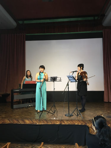 会場のステージにおいて、ミューズ・クワイアによるコーラスほか、ダンス、ピアノ、ヴァイオリンなど、各種パフォーマンスを実施。