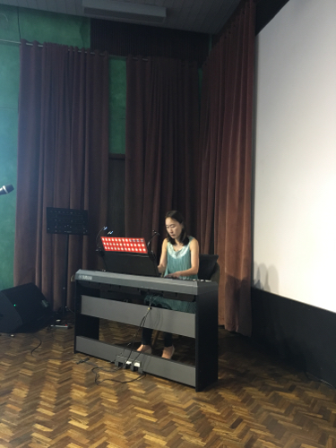 本当は出演予定だった常連のメグ&ミラクルズ。7歳になるメグは、毎回出演を楽しみにしてくれているのだが、今回あいにく風邪でダウン。時間があいたので、ピアニストのメンバーに伴奏を頼んで、メグの代わりに歌う。