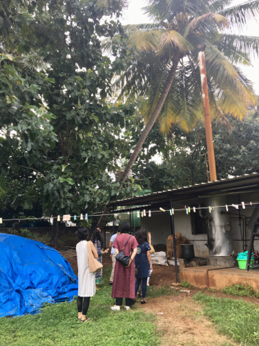 今回の訪問は、ミューズ・クリエイションの「チーム・フレックス」メンバーとしても活動してくれている養蚕ボーイズが企画してくれた。バンガロール郊外の養蚕農家支援のため派遣されたJICAの青年海外協力隊隊員2名だ。