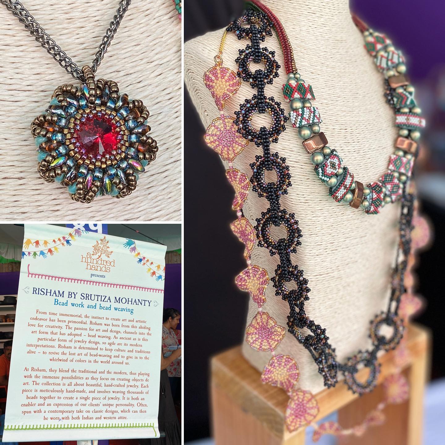◎品質のよい日本のビーズやスワロフスキーのクリスタルを用い、伝統的な技法のアクセサリーを作る女性アーティスト。左上のペンダントを衝動買い。