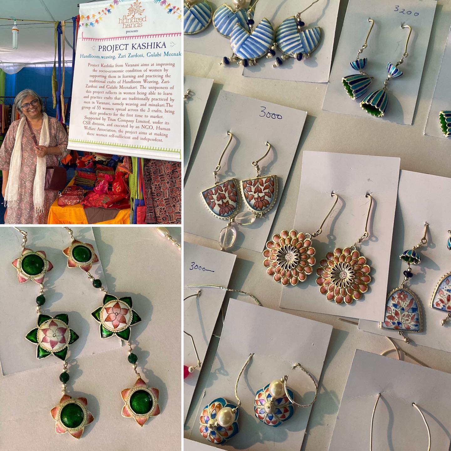 ◎我が敬愛する友人、デヴィカの店舗。かつてわたしをカシミール地方手工芸の旅にいざなってくれた彼女。ミューズ・チャリティバザールの常連でもある。インド各地の、貧しい女性たちに手工芸を教え、自立を支援している。いくつものプロジェクトを手がけているが、これは最新。従来、当該地方では男性しか作らなかったシルヴァーとエナメルの手工芸品を、初めて女性が作った作品とのこと。