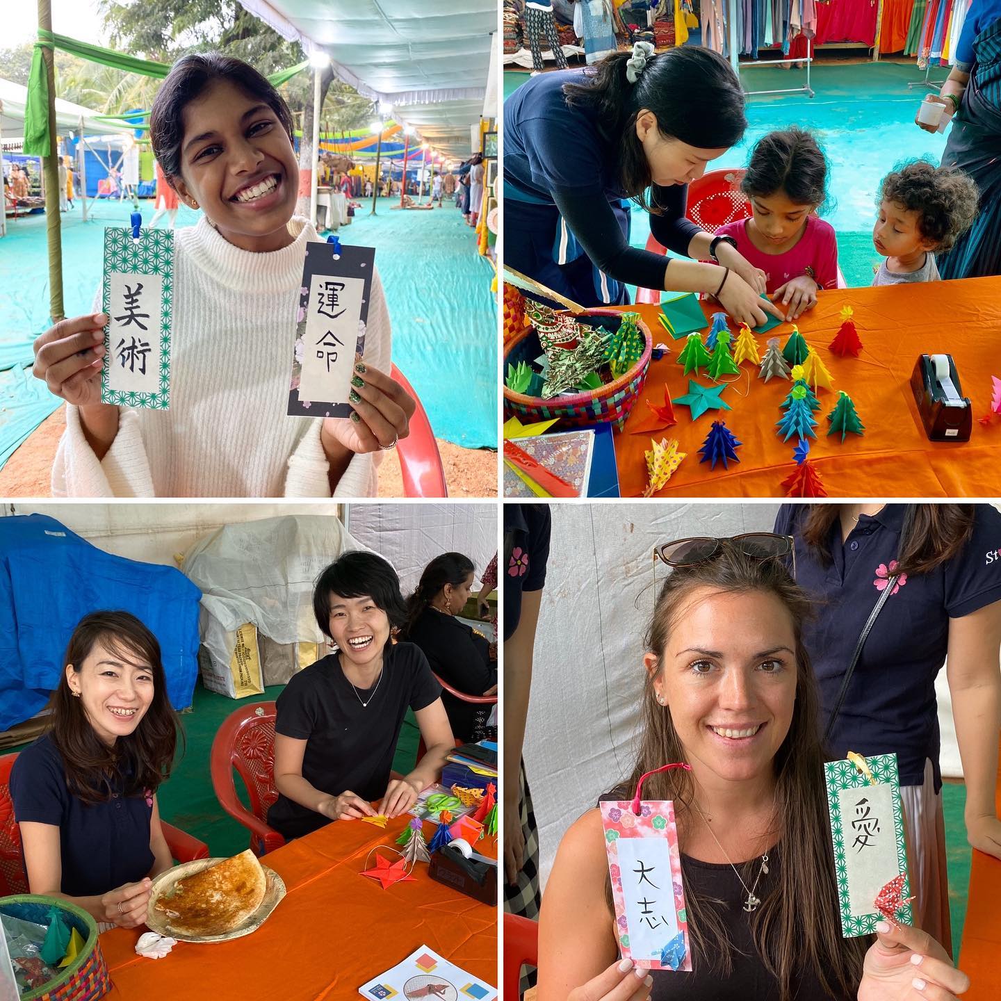◎昨日とは別のメンバーも参加しての、来訪者との交流。小人数ながらも、ゆっくりと書道や折り紙を体験し、みなそれぞれに満足そう。