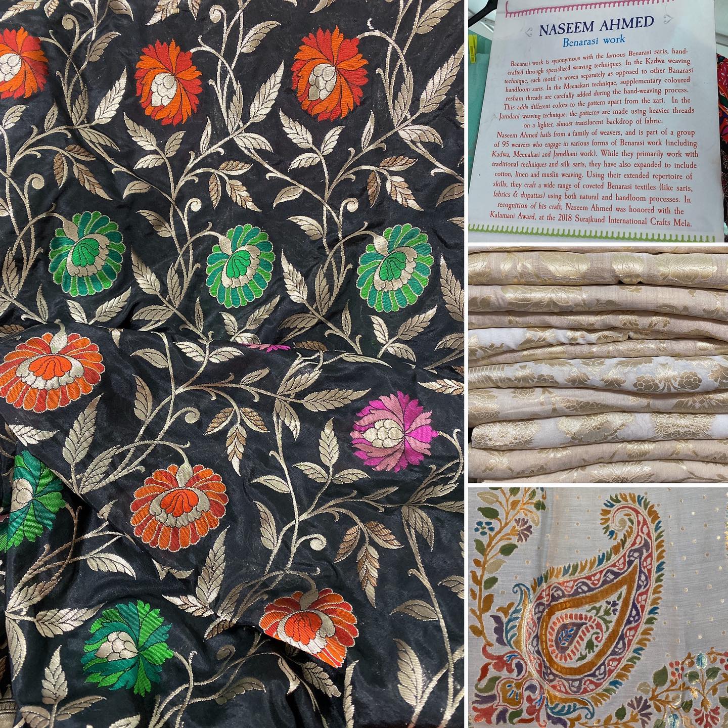 ◎バナラシ・シルクの、上品な光沢の織物は、いつ見ても目を奪われる。心を引かれる。触りに行ってしまう。
