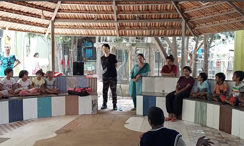 これまではやんちゃだった子どもたちは、今日は参加者が少ないせいだろうか、とても静か。歌にも、真剣に聞き入ってくれて、ちょっと照れた。さすがに踊りはしなかったが、慈善団体訪問時には、歌ったり踊ったり、演奏したりできると、本当にいい。
