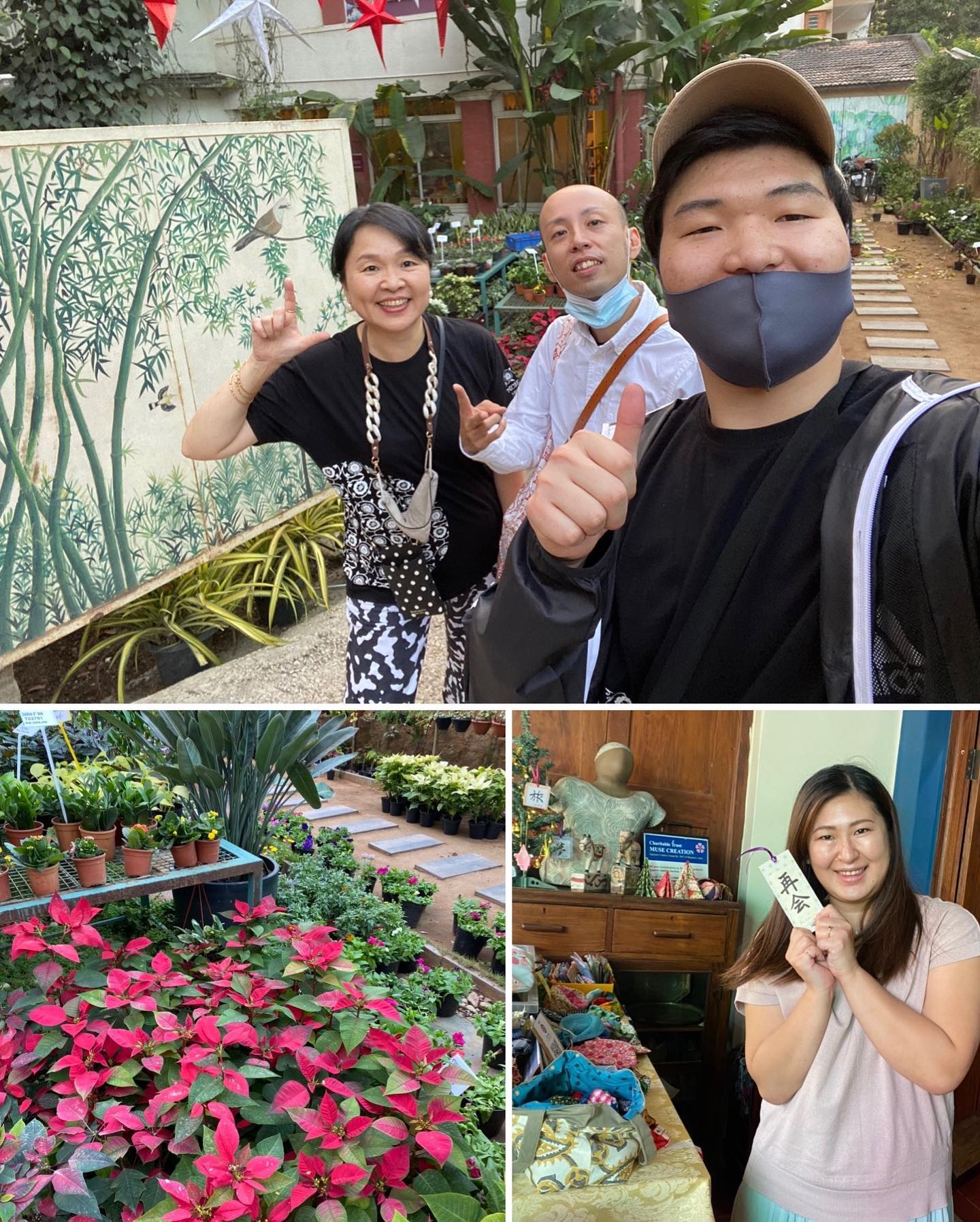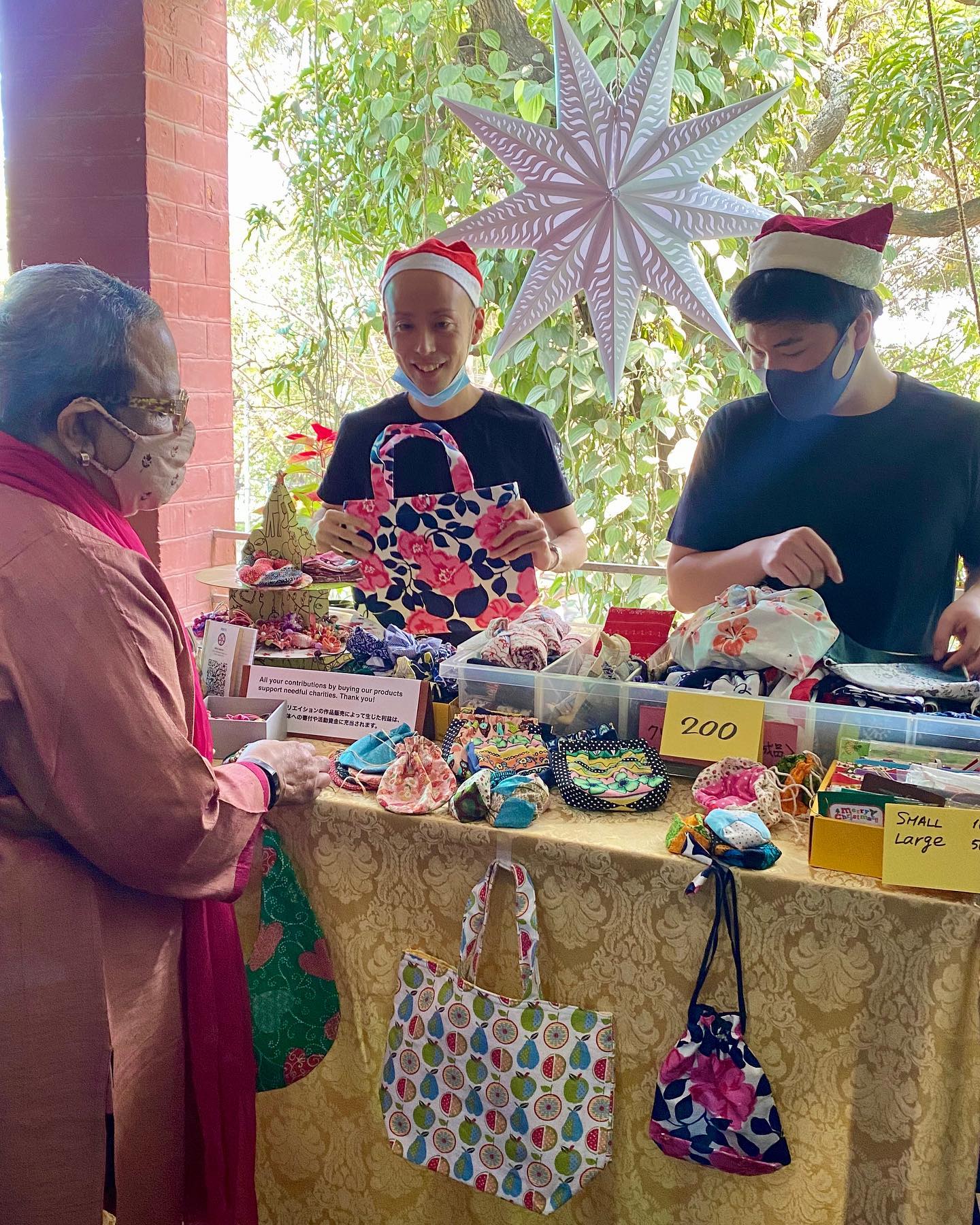 以前からの在庫に加え、ロックダウンの期間中に、メンバーが作ってくれた手工芸品を販売したく、今回は一人でやる予定だった。しかし、平日ながらも駐在員&学生メンバーの男子2名が手伝ってくれた。