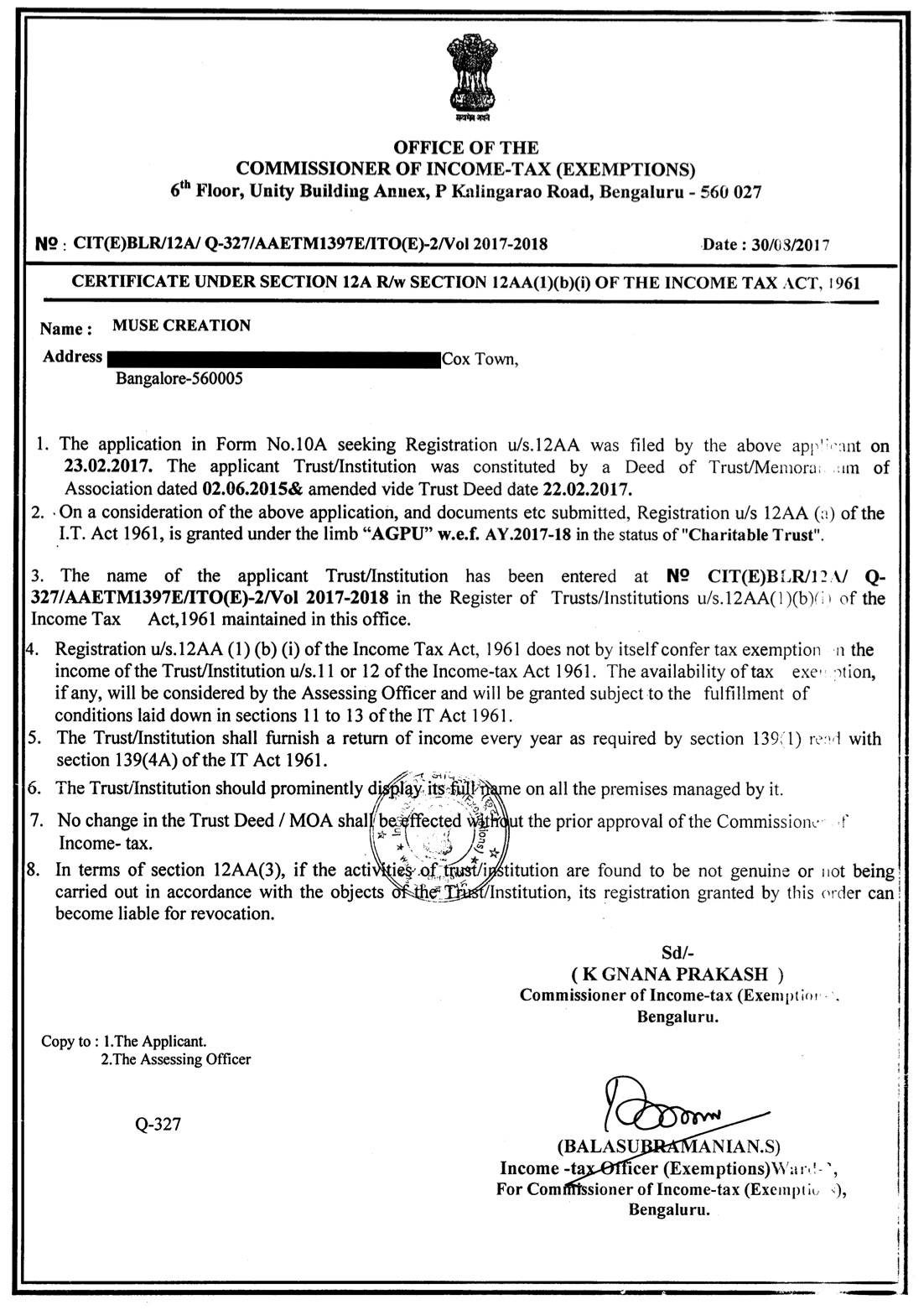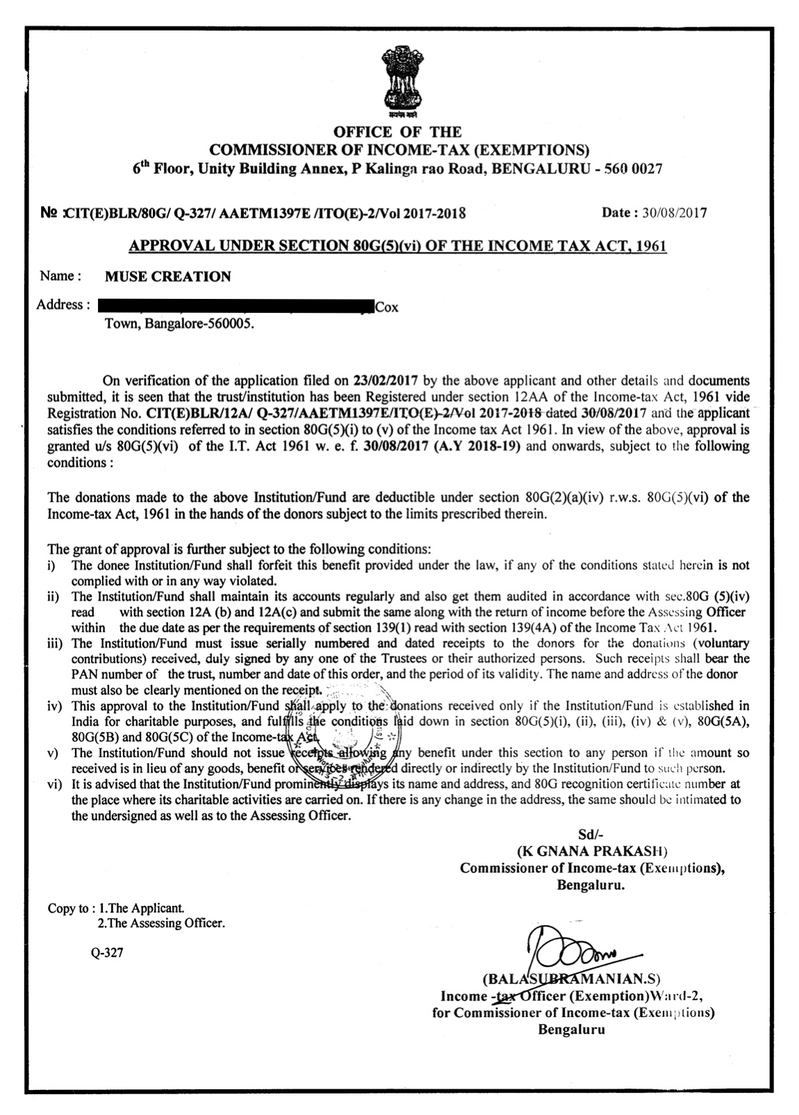◎NGO化した最大の理由は、ミューズ・クリエイションの銀行口座を設け、経理を詳らかにし、正しく納税申告をすることにあった。また将来、寄付金を受けることになった場合に備えて、12G及び80Gの申請を行なった。この手続きに際しては、Trust Deedの変更が必要となり、会計士や弁護士に再び依頼するなど、一筋縄ではいかないプロセスを経た。