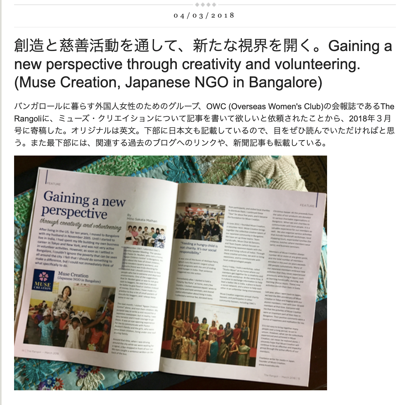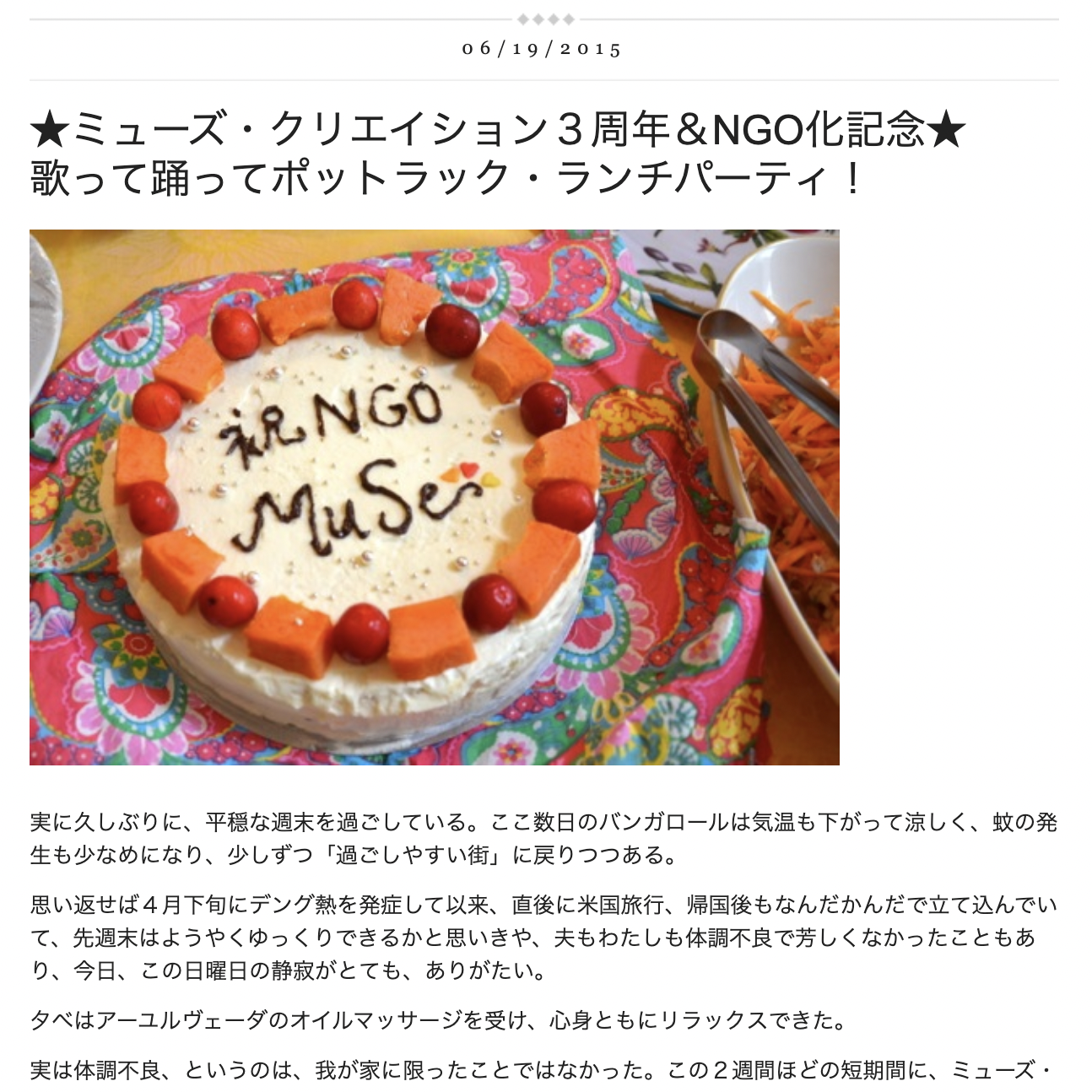 これらの記録は、すべて下記のブログに克明に残されている。慈善団体訪問に関しては、参加メンバーの感想文も添えられており、それらはミューズ・クリエイションにとって、宝のようなものだ。