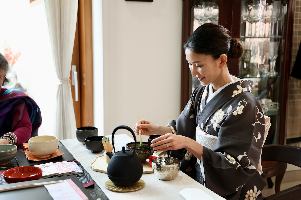 写真をご覧いただければお分かりのとおり、ゲストの服装と展示物とが調和して、違和感がない。違和感がないどころか、ゲストを含めて全体が、空間を美しく構成しているようにも見える。日本人にとっても、インド人にとっても、自国の伝統文化を見つめ直す良い機会になったことは間違いない。