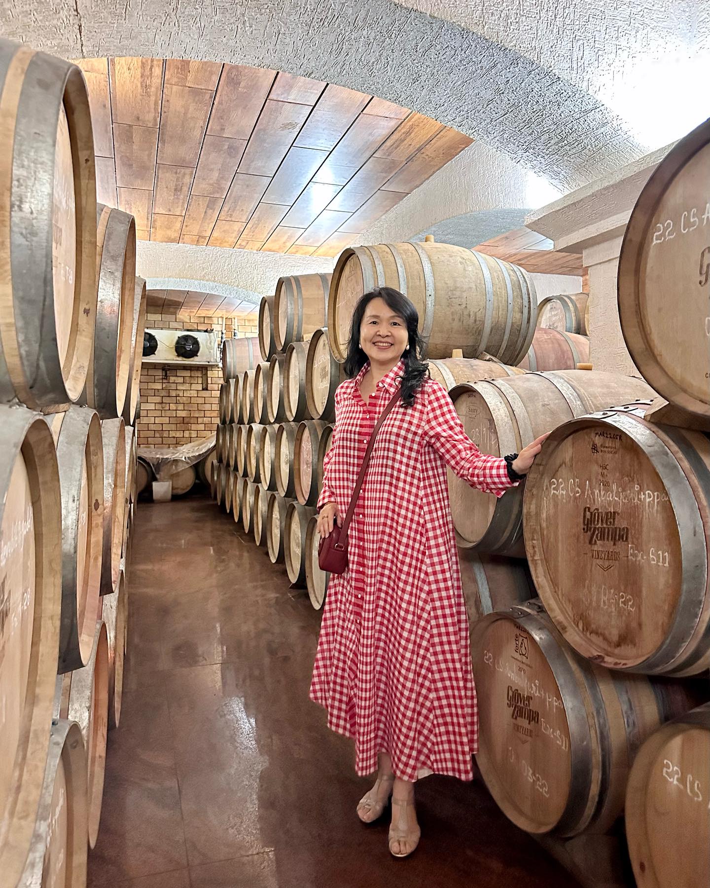 ここには、2010年に訪れて以来、14年ぶりだ。結構な歳月が流れただけあり、テイスティング・ルームが整い、ランチを出すレストランも開業するなど、雰囲気はよくなっていた。1日3回(90分)実施されているガイドツアー(約750ルピー)。わたしたちは、午後2時開始の部に参加した。ワイナリーの歴史にはじまり、スパークリング、白、ロゼ、赤……と各ワインの製法、ワイン樽の役割(発酵や熟成)などについて学ぶ。