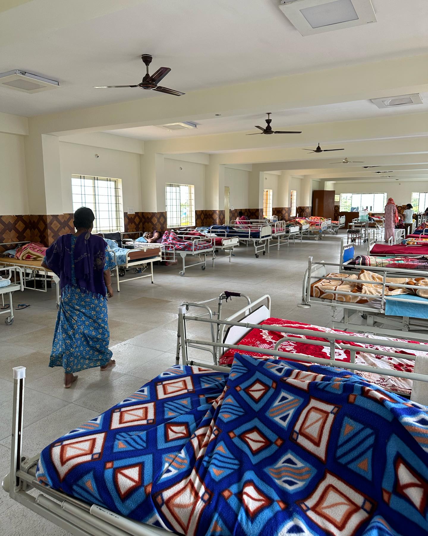 インドの方たちが慈善活動を始めるきっかけが、神様からの啓示というのが日本には無い理由だなぁと思います。今回訪れた施設は路上で瀕死の人を連れて来てお世話をして。そして収容されてる人の8割は精神疾患で働けない状態という…かなりヘビーでした。また寄付の送金がストップしてて、ただでさえ少ない資金もないという。