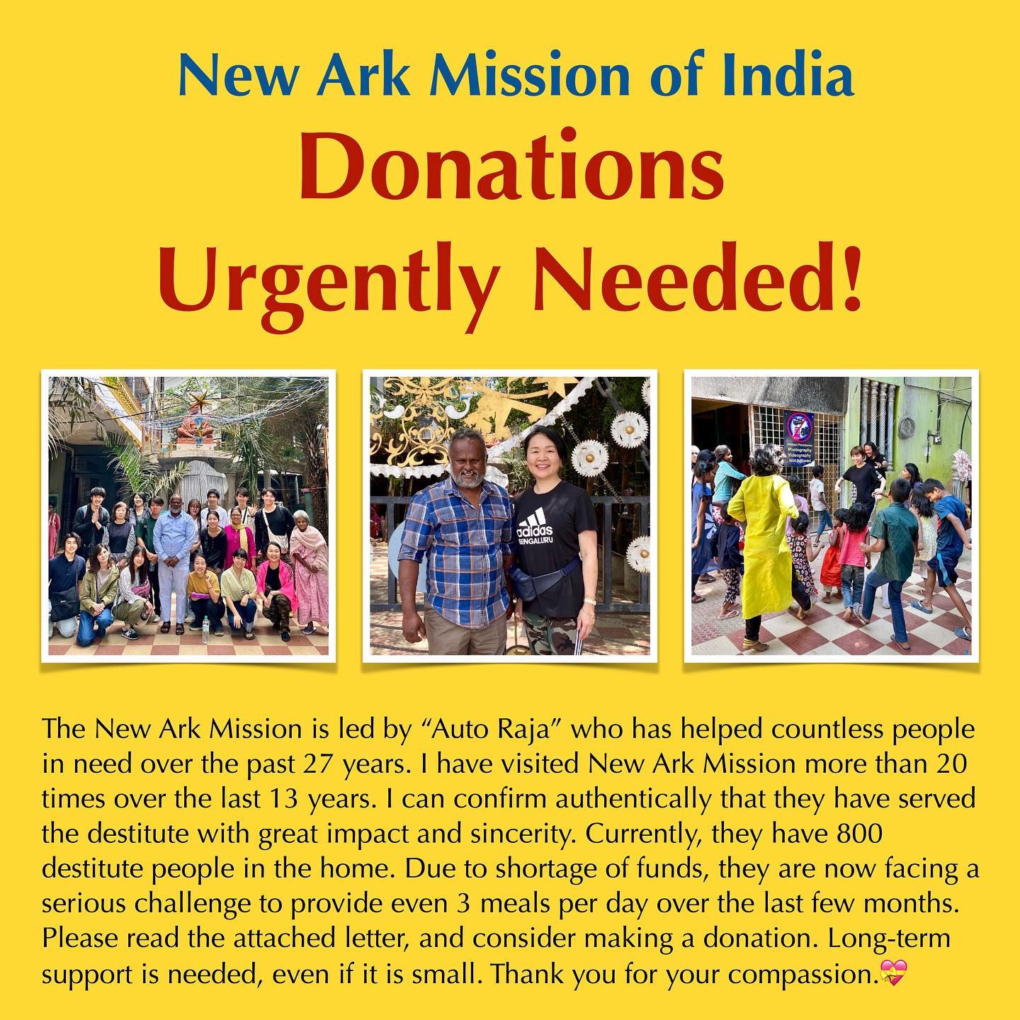 2011年に初めてNew Ark Missionを訪れて以来、わたしは13年間に亘って、Rajaの尽力を目にしてきました。彼に私欲がないことは、彼の活動を見ればすぐにわかります。