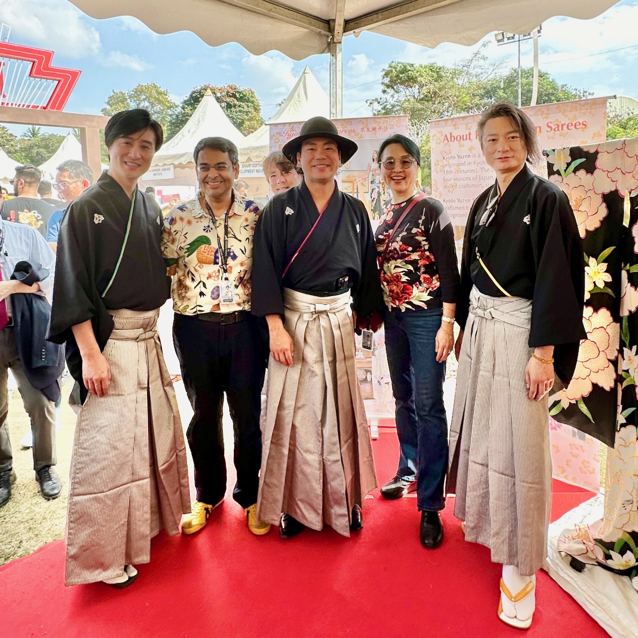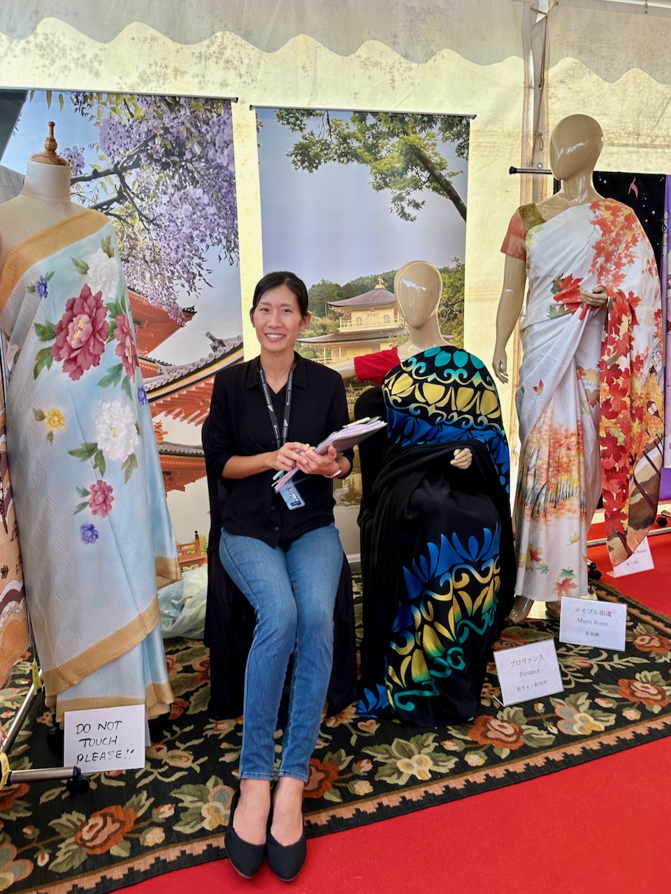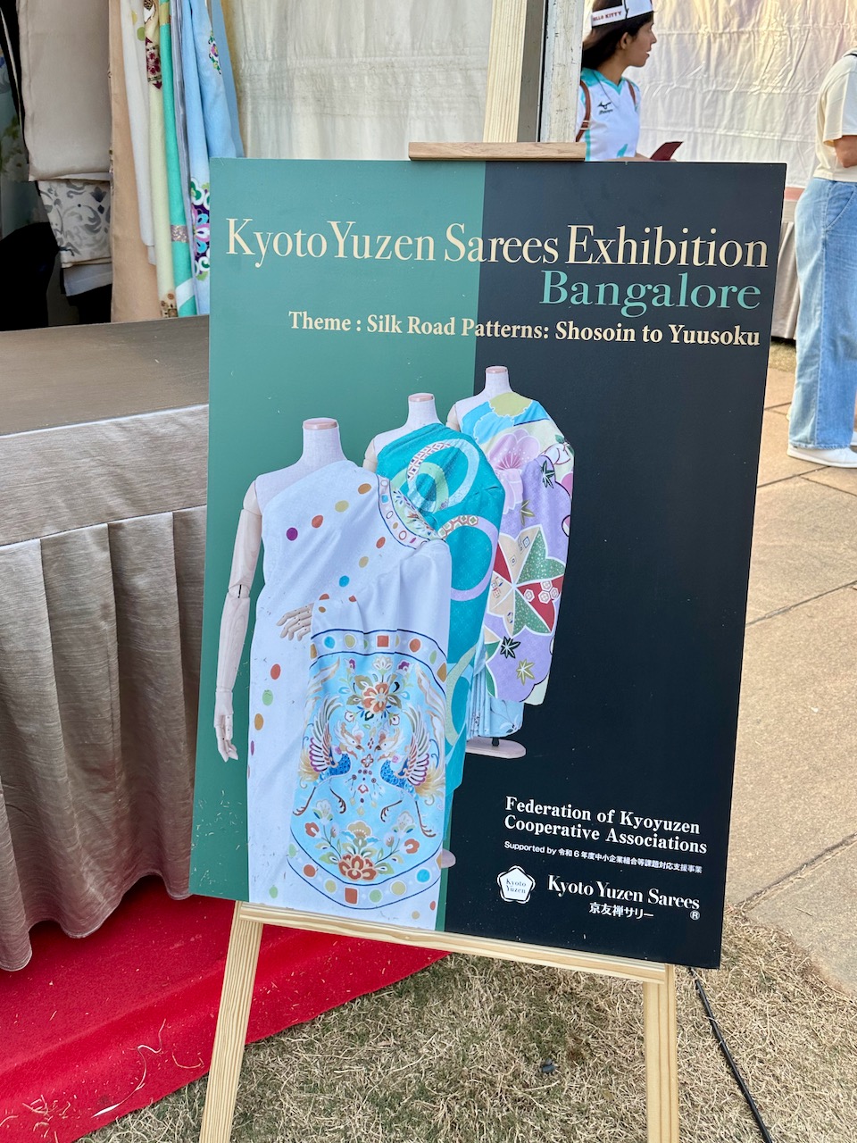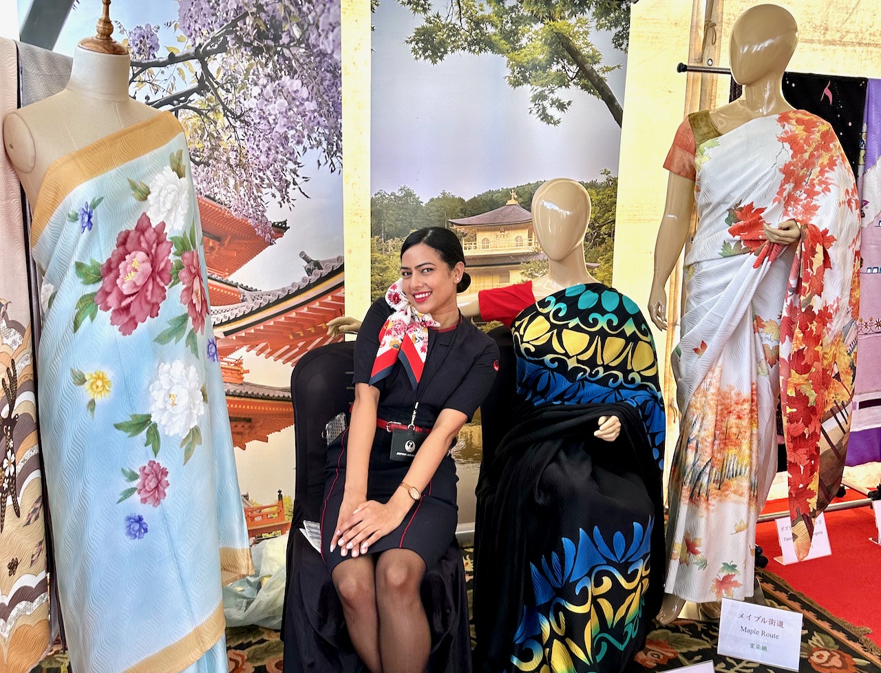 大音響で盛り上がる数々のステージ・パフォーマンスの中、声を枯らしながら京友禅サリーの説明をした一日。我が夫や、こちらで働く女性にサポートをしてもらってなんとか乗り切った。