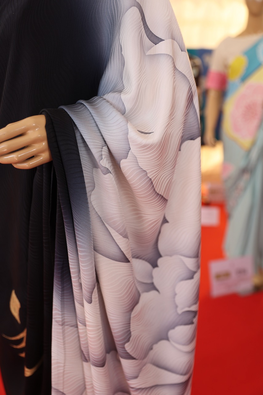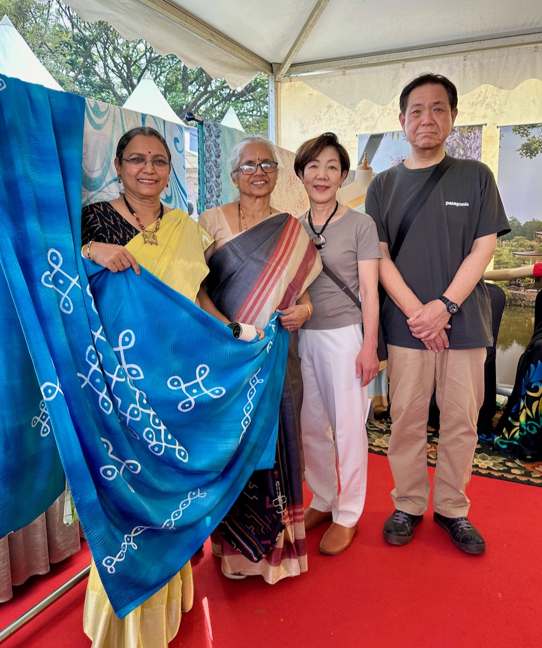 2年前に続いて、今回も、京友禅サリーの発起人である京都工芸染匠共同組合の竹鼻夫妻も、京都からお越しになっていた。JAPAN HABBAのスケールの大きさ、そして若者の多さに圧倒されていた。